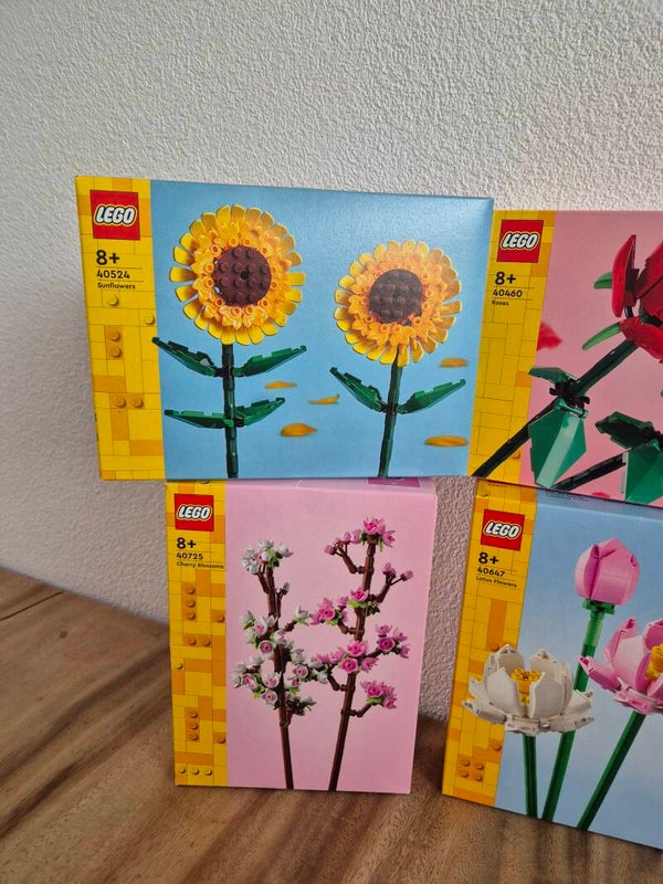 Lego bloemen sets combinatie zonnebloemen (40524), rozen (40460), kersenbloesem (40725) en Lotusbloemen (40647)